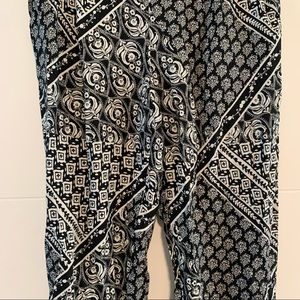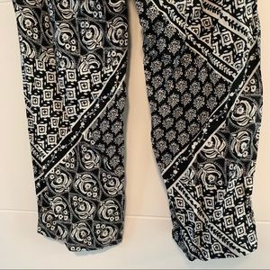 Beautiful black and white patterned pants. Easily dressed up or down, perfect stylish summer look! Side zipper, straight down and looser fit. In great worn condition, see photos