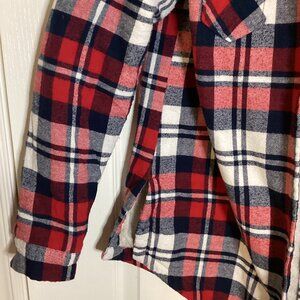 UK2LA Women's Fleece Shirt Jacket Red Plaid Size M Hooded Soft Warm Button Front