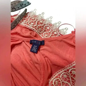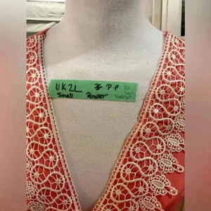 UK2la short romper small P-P 22 v neck lace crochet detail elastic waist