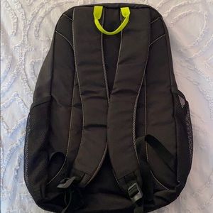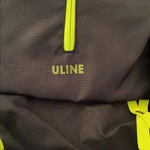 Black and green ULINE backpack. Never used. 3 pouches, 2 mesh water bottle holders, adjustable back straps