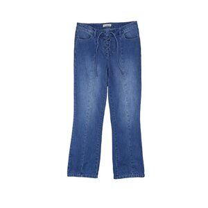 ULLA JOHNSON Alex Jeans medium wash Mid Rise Waist Lace up cropped sz 2