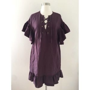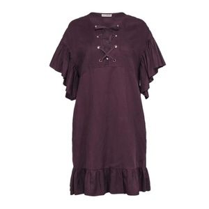ULLA JOHNSON MARIANNE TWILL LACE-UP SHIFT DRESS SZ 0 BORDEAUX G8523