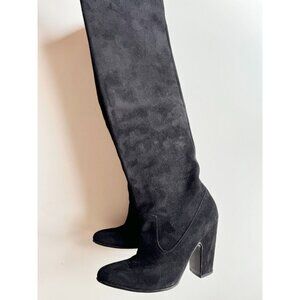 ULLA JOHNSON Sloane Black Suede Leather Tall Slouchy High Heel Boots, Size 35