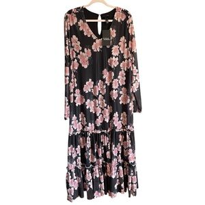 ULLA POPKEN Maxi Tiered Layered Floral Dress-Size 20/22-Lined-Long Sleeves NWT