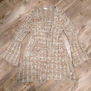 UMGEE Beige Long Cardigan Womens Size Small Melange Knit Crochet Bell Sleeve