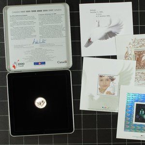 1 complete Canada Post issued 1999/2000 Millennium Collection Tin promoting World Peace. United Nations wrapper, seemingly less common than the Peace Dove cover.
