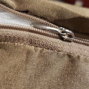 #910 Unbranded Bronze Silver gold rectangle decorative pillow cushion with thick silver fringe 12" x 22"