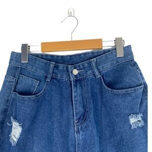 UNBRANDED WOMEN'S Medium Wash High Rise Destroyed Frankenstein Patch Jeans US M