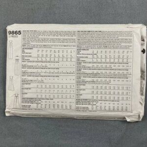 1996 Simplicity Dress pattern 9865 sizes 10-14. Formal cocktail evening or wedding dress. 9 variations. Sleeveless. Straight or flared skirt. Variations in long or short length, with choice of wide, narrow, or halter straps.