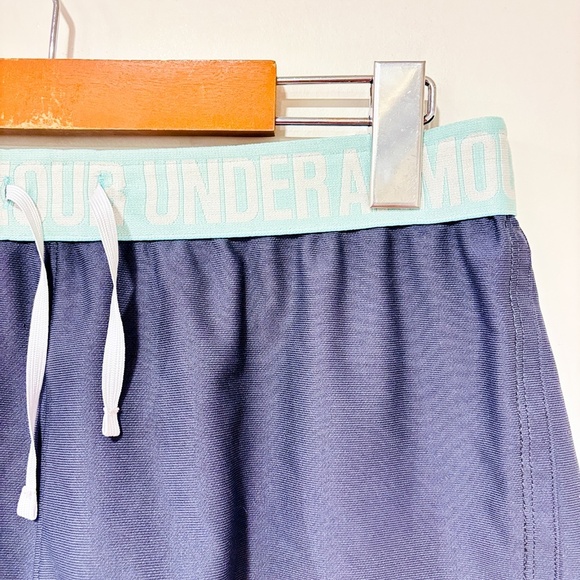 These Under Armour grey athletic shorts feature a soft, moisture-wicking fabric and a branded elastic waistband for a secure fit. Lightweight and ideal for running, training, or casual wear.