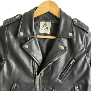 UNIF Vegan Leather Jacket Size XS Solid Black Moto