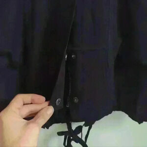 • Style: Front Zipper with button flap to hide zipper, Hood on back, Slit on bottom back that can be tied up (Front bottom can be tied up as well), elastic band on back waist, Sleeveless, two front pockets and one chest pocket