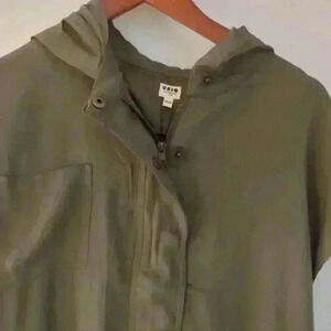 • Style: Front Zipper with button flap to hide zipper, Hood on back, Slit on bottom back that can be tied up (Front bottom can be tied up as well), elastic band on back waist, Sleeveless, two front pockets and one chest pocket