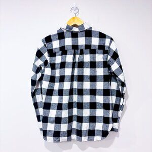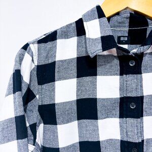 UNIQLO Black & White Plaid Flannel Shirt Cotton Casual Layering