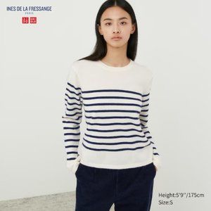 UNIQLO - CASHMERE Striped Long Sleeve Crew Neck Sweater - SZ Large -BNWT