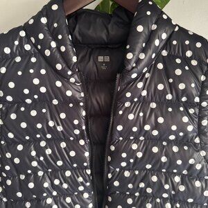 Keywords: uniqlo vest, puffer vest, quilted vest, polka dot vest, navy vest, down vest, winter layering, ultralight puffer, water resistant vest, adjustable waist vest, minimalist outerwear, uniqlo jacket, fall fashion, cozy vest, chic winter look, stylish warmth, utility, versatile, practical, down-filled.