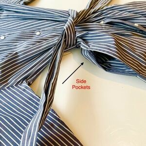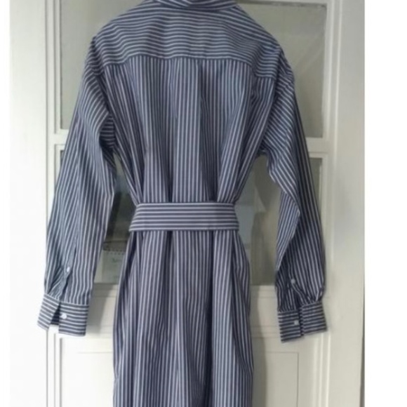 UNIQLO BLUE/GREY DRESS 100% COTTON WOMENS LONG SLEEVE WHITE STRIPED SHIRT BUTTON UP WITH WIDE BELT/SASH AND SIDE POCKETS