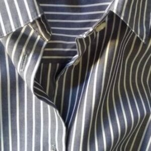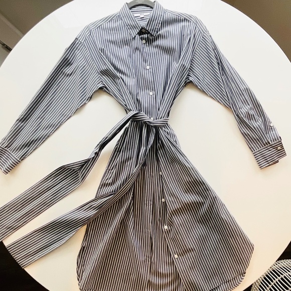 This is a lovely, very crisp looking shirt dress. Perfect for the office or business casual but can also be dressed down and styled for a more casual look.