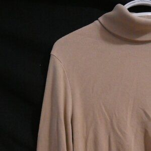 A stylish beige turtleneck long sleeve shirt made of soft and comfortable fleece fabric