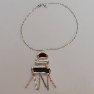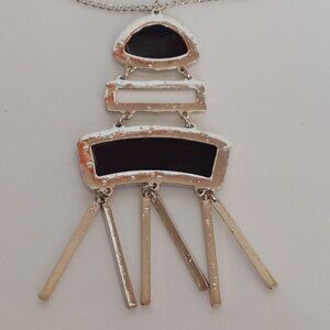 UNIQUE Statement Pendant Necklace Silver Tone Black and White Stone Black Onyx