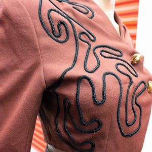 Fancy to stand apart from the commercial pact? This unique vintage cropped bolero top does that and so much more. Soutache braiding, distinctive wired buttons, superior tailoring and craftsmanship make this top the cream of the crop!