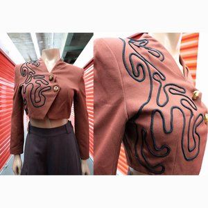 UNIQUE Vintage cropped mini bolero TOP soutache braiding XS