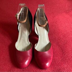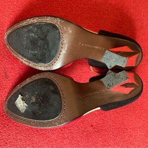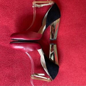 UNITED NUDE Sz 40 Rounded Toe Leather Suede Ankle Strap Golden Heel Shoes Heels