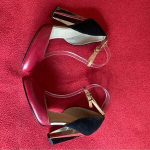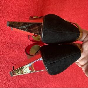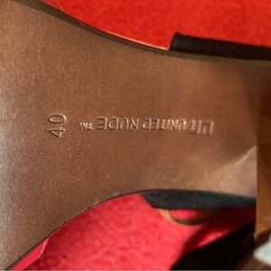 UNITED NUDE Sz 40 Rounded Toe Leather Suede Ankle Strap Golden Heel Shoes Heels. Quintessential UN fun and unique. Gorgeous to dress up. Perfect for a party, wedding, night out, date night, event. The golden heel gives you that chic pop of metallic for your outfit.