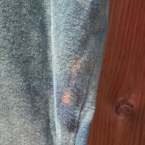 There is some orange tie dye splatter. It was always like that. It's not a flaw but I wanted to point it out (last photo).