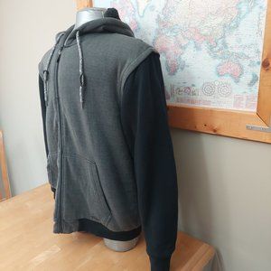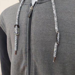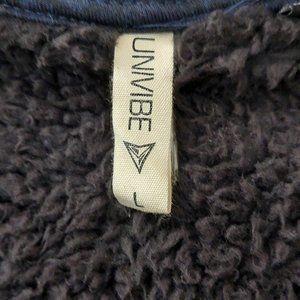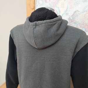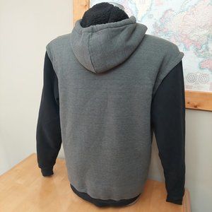 UNIVIBE Fuzzy Sherpa Lined Full Zip Jacket Grey Stripe Black Accent Men's Large