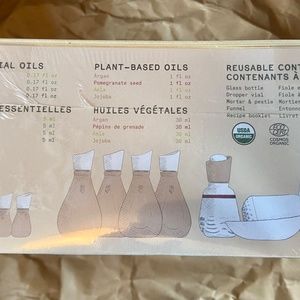 Includes essential oils, plant-based oils, reusable ceramic containers and recipe booklet.