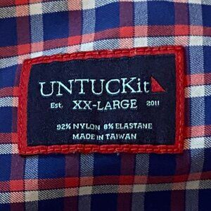 Untuckit Men’s Performance Stuhlmuller Button-down shirt (Style #40634) in Size 2XL, Blue, Red, White Plaid/Check