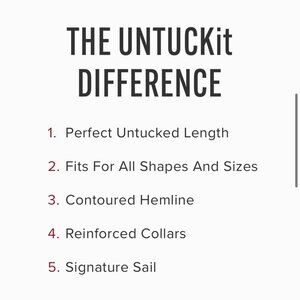 Fit: Regular *UNTUCKit’s classic cut with the perfect untucked length. Runs slightly smaller than traditional shirts.