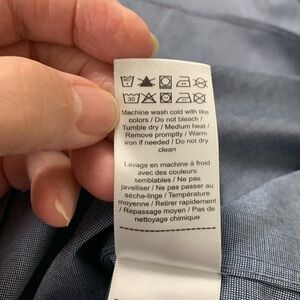 Pattern is a very small blue and white check. Medium weight, so good for all four seasons.