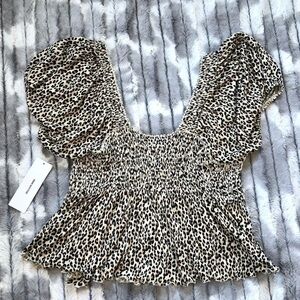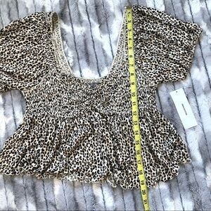 Swingy top from UO cropped above the waist with smocked detailing at the sweetheart neckline. Finished with puff sleeves.