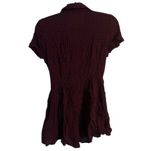 UO Bellina Button-Down Shirt Romper Wine Red Houndstooth 90s Retro Size 4