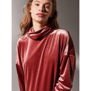 UO Dusty Pink Velvet Turtleneck Mini Dress S