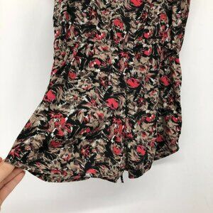 UO Kimchi Blue romper red tan abstract print ruffle neck spaghetti straps XS