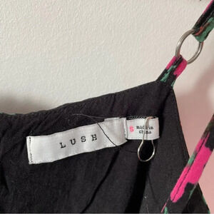 UO Lush Floral Skinny Strap Ruffle Hem Romper Black Pink Red Size Small