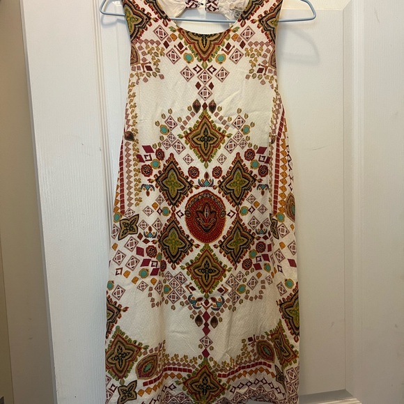 Embrace a bohemian vibe with this sleeveless dress featuring a vibrant pattern. Perfect for casual outings or a day at the beach.