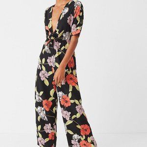 Femme, floral + funky all in one with this jumpsuit from Urban Outfitters. Woven floral fabrication with an elastic banded waist + plunging v-neckline that leads to a tie-front accent at the waist. Finished with extra-long short sleeves + a high-rise relaxed-fit pant bottom.