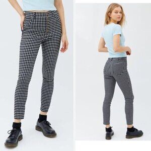 Slim-cut pants from UO in an allover plaid print. Buttoned at the high waist and fitted to the ankle.