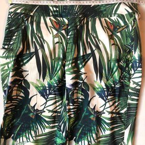 UP Palm Print Tropical Leaf Slit Slim Pant, Size 8