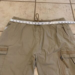Urban Heritage, cargo pants, jogger pants, men's joggers, tan pants, khaki pants, size large, regular fit, casual, streetwear, comfortable pants, drawstring waist, athletic pants.