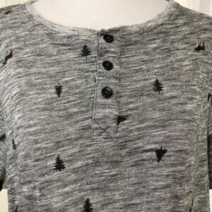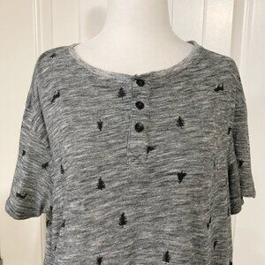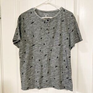 URBAN HERITAGE Dark blueish grey striped t-shirt w/ tree and moose print ~ LARGE
