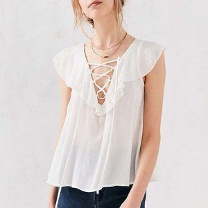 Kimchi Blue Lace-Up Ruffle Tank Top in black