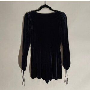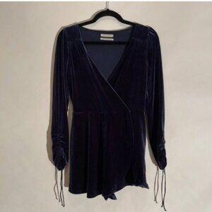 A great evening romper short by Urban Outfitters. Velvet outer, skort style and ruched adjustable sleeves. Surplice top area.