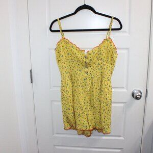 URBAN OUTFITTERS YELLOW ROMPER MEDIUM FLORAL SWEETHEART NECK BETTI PRINT LINEN