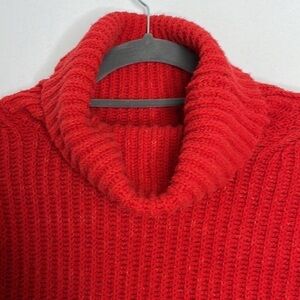 URBAN Outfitters Tomato Red Ribbed Slit Cowlneck Sweater