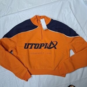 URBAN Outfitters Utopia Half-Zip Sweatshirt orange -blue